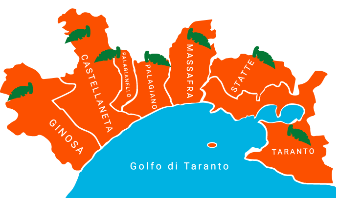 La zona di produzione delle Clementine del Golfo di Taranto IGP comprende l’area dei comuni di Castellaneta, Ginosa, Massafra, Palagianello, Palagiano, Statte e Taranto, il cosiddetto “Arco Jonico Occidentale” della Provincia di Taranto in Puglia.